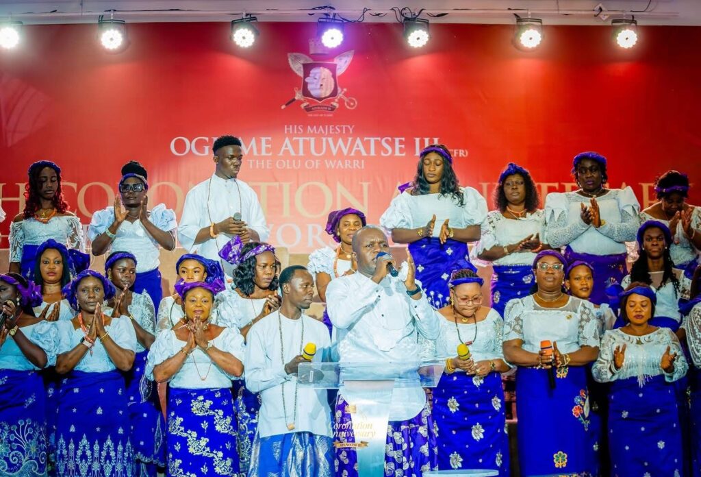 The Warri Kingdom has come alive as His Majesty Ògíamè Atuwatse III, the Olu of Warri, begins a week-long celebration marking his 4th Coronation Anniversary. The opening service at the Palace Church in Aghofen was filled with songs of praise, thanksgiving, and heartfelt prayers as the Itsekiri Nation reflected on four years of peace, progress, and prosperity under his reign.